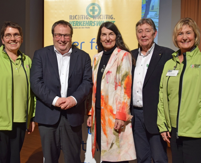 Helge fand die VW Mülheim besonders wichtig, der Minister erinnerte an die verhüteten Unfälle und somit am Leben gebliebenen, die Präsidentin ermahnte weitere Anstrengungen, weil aktuell die Unfälle auf dem Schulweg bundesweit zunehmen. Der OB und Schirmherr lobte und kündigte den lange ersehnten Verkehrsübungsplatz an. Der Vorstandsvorsitzende Gunter Zimmermeyer freute sich über den Zuwachs zum Jubiläum auf 100 Mitglieder aber wünschte sich deutlich mehr Aktive, um die Sicherheit im Straßenverkehr weiter zu verbessern. Er zeigte den großen Scheck der Sparkasse Mülheim auf und würdigte alle Sponsoren, mit deren Hilfe die VWMH in den letzten 13 Jahren Sicherheitsmaterial für Kinder, Jugendliche, Erwachsene und Senioren für mehr als 130 tausend EURO verteilt hat.