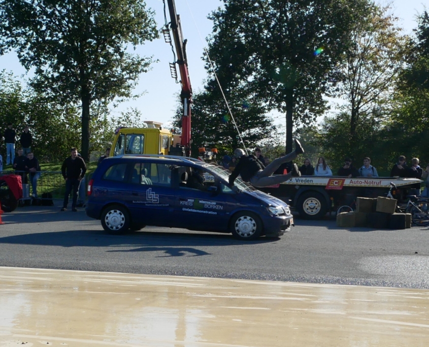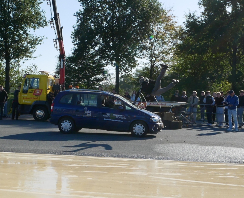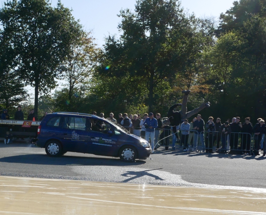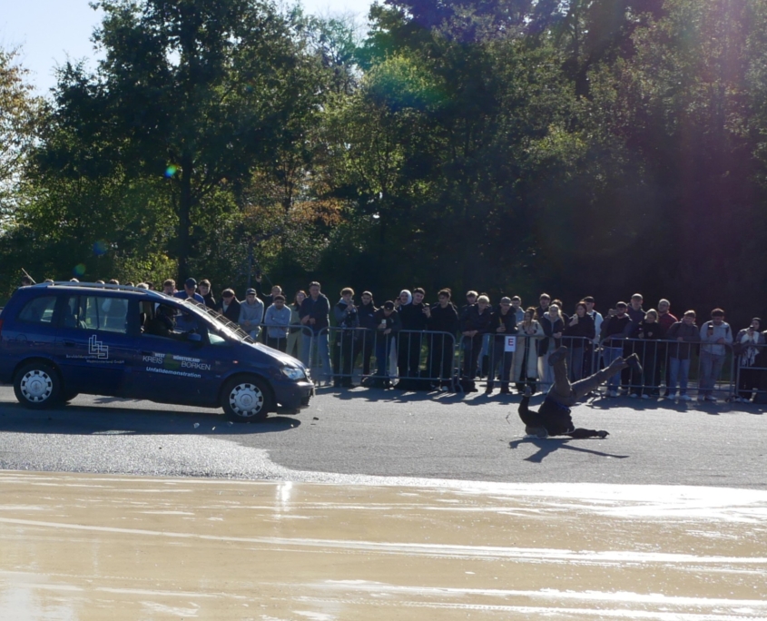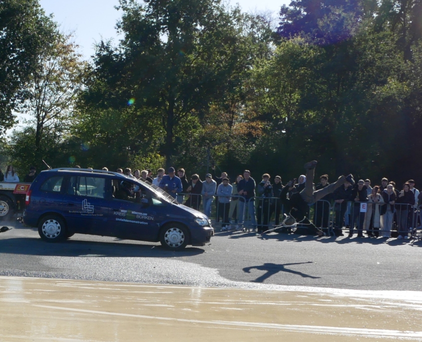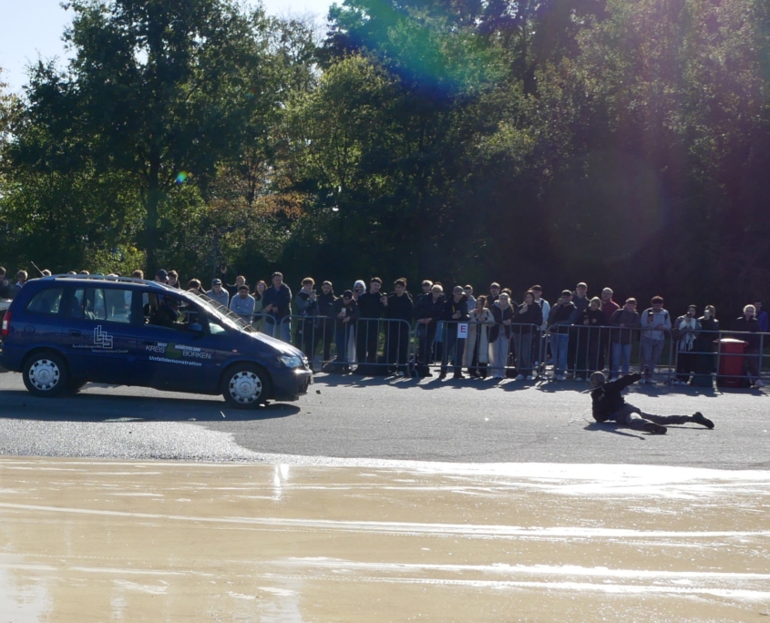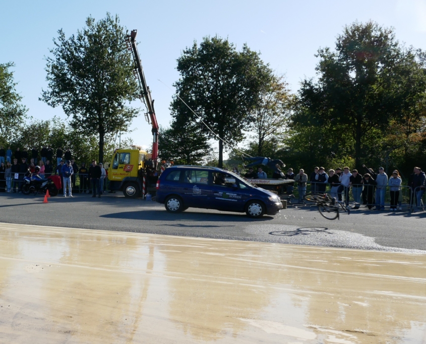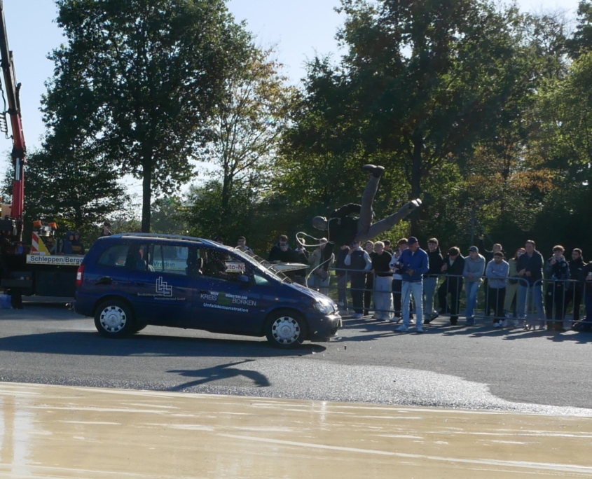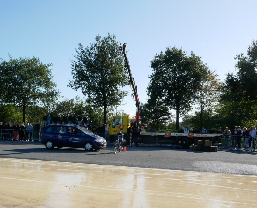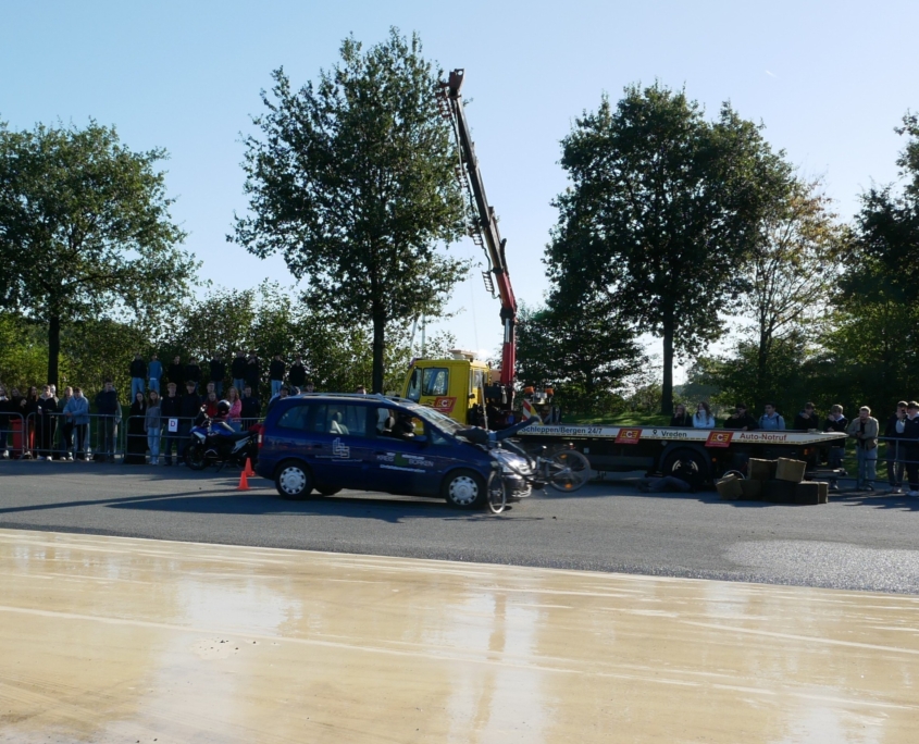 CrashDemo auf dem Verkehrsübungsplatz Gescher für nahezu 100 Schüler*Innen der Gesamtschule Saarn.
